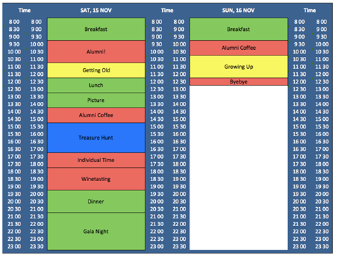 Join us for two days of fun, plenty of time to reconnect and network with other alumni and time to reflect.